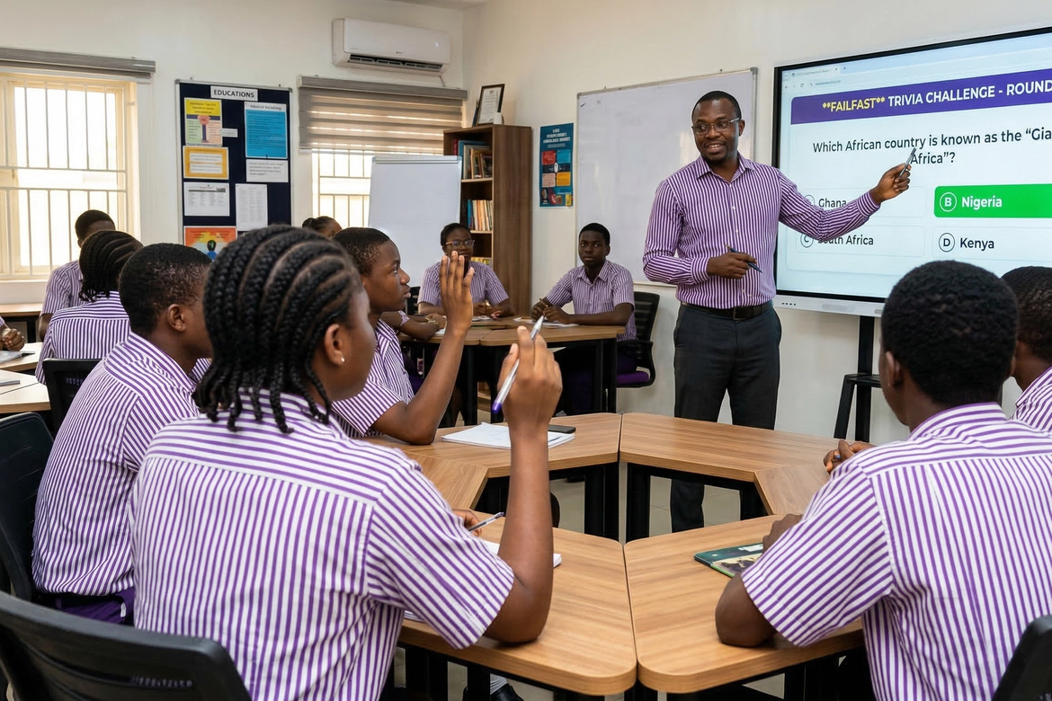 Students access the platform through FailFast Mine, the practice mode. Their class level is set by the school admin as a default, but students can choose to practice any class level freely. An SS2 student who wants to work on JSS3 Maths to close a gap can do that. An SS1 student who wants to stretch into SS3 content can do that too.